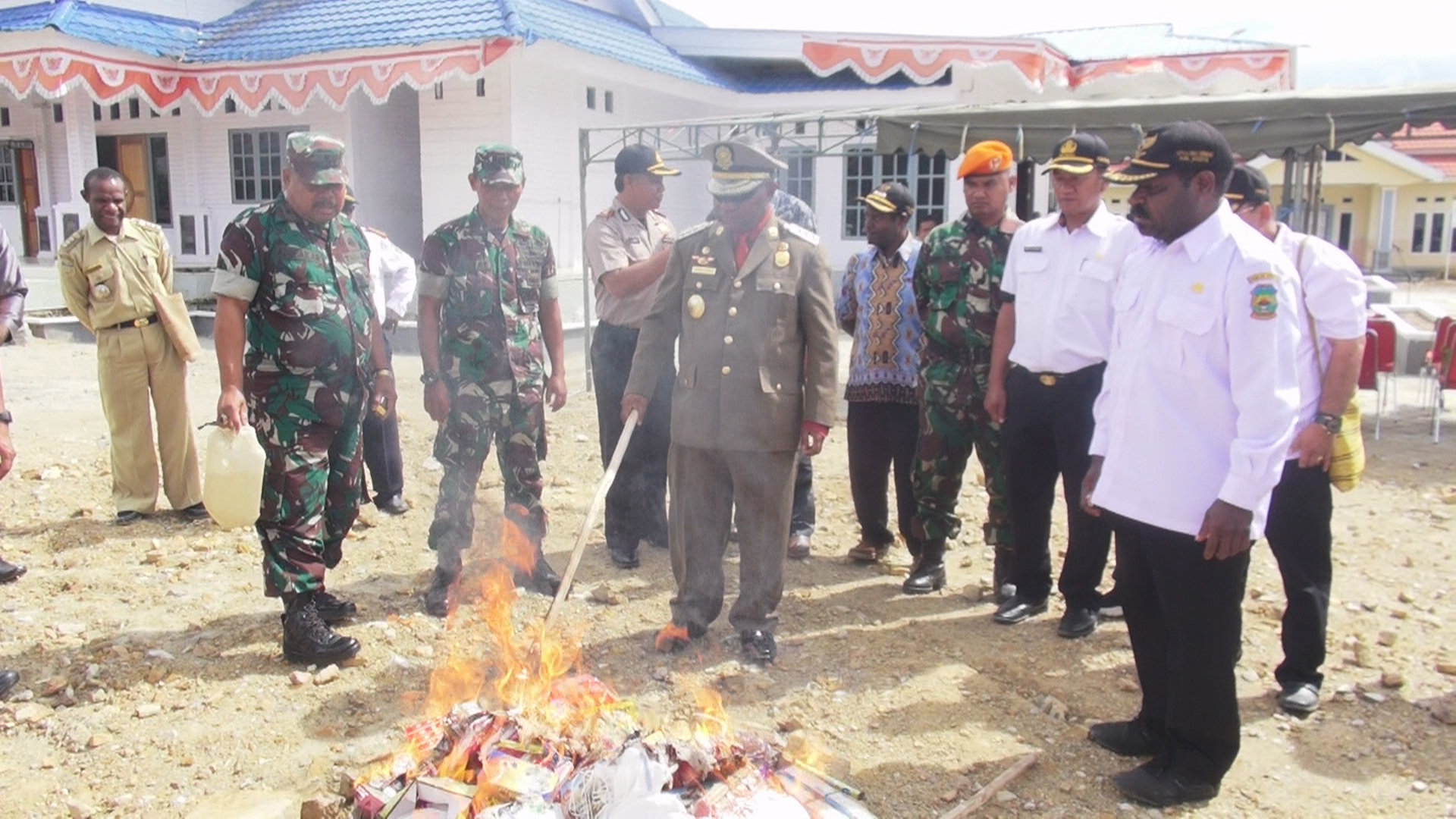Jelang Naratu, Pemkab Dogiyai Musnahkan 10 Karung Mamin Kadaluarsa