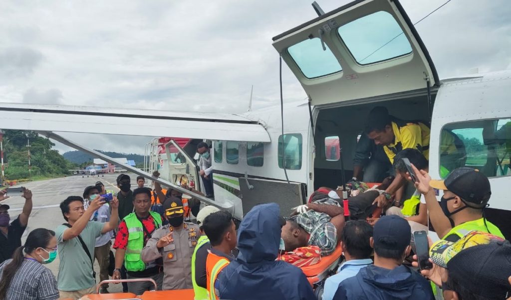 “ Laporan yang kami terima sekira pukul 10.20 Wit tadi, korban Alemanek Bagau sudah tiba di Kabupaten Nabire dengan menggunakan pesawat SMART AIR dari Bandar Udara Sugapa Kabupaten Intan Jaya, “Kata Kamal.