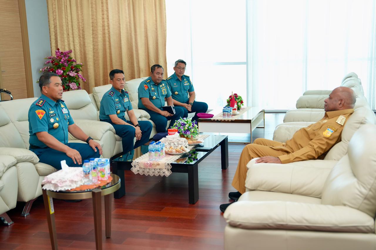 Pertemuan tersebut membahas penguatan kerja sama antara unsur pertahanan maritim dan pemerintah daerah untuk mendukung percepatan pembangunan serta menjaga stabilitas keamanan di wilayah Papua.