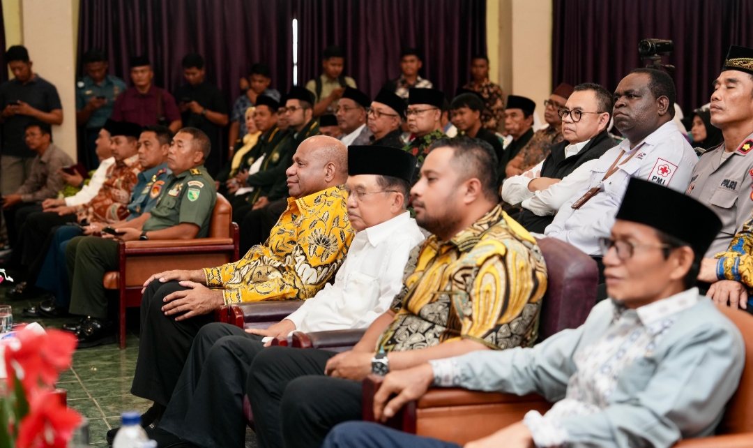 Jayapura, Topikpapua.com, – Gubernur Papua Matius D. Fakhiri mendampingi Ketua Umum Pimpinan Pusat Dewan Masjid Indonesia (DMI), H.M. Jusuf Kalla pada acara Pelantikan dan Pengukuhan Pimpinan Wilayah DMI Provinsi Papua di Aula Universitas Yapis Kota Jayapura, Minggu (23/11/2025).