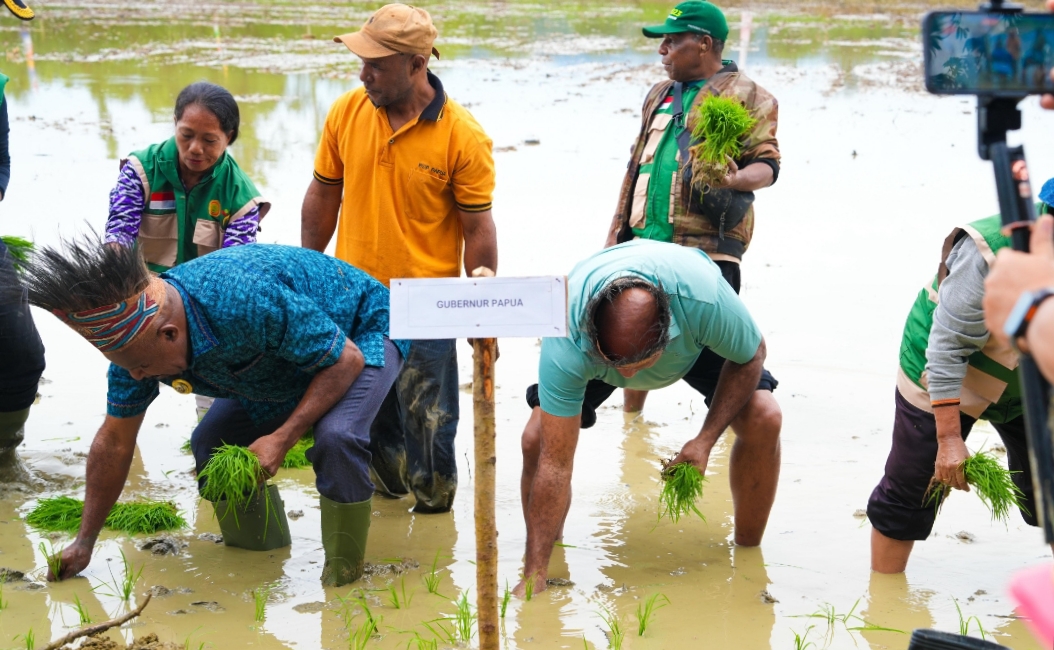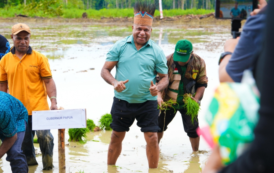 Tanam Padi Perdana dan Serahkan Bantuan Alsintan, Gubernur Fakhiri: Petani Papua Harus Merdeka!
