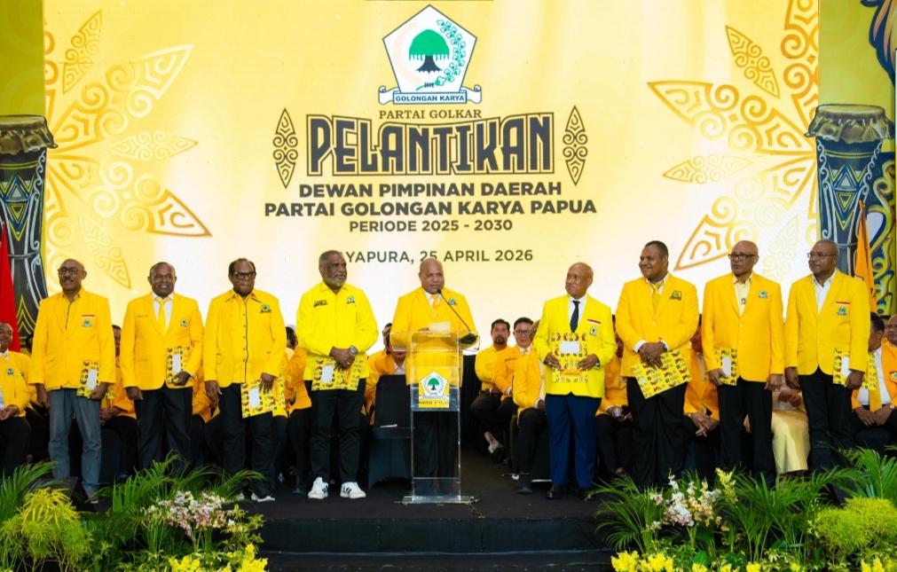 Jayapura, Topikpapua.com, — Ketua DPD Partai Golkar Papua, Matius D. Fakhiri, menegaskan komitmen konsolidasi dan kesiapan partainya menghadapi Pemilu 2029. Hal itu ia sampaikan saat pelantikan pengurus Partai Golkar periode 2025–2030 di Kota Jayapura, Sabtu (25/4/2026) oleh Ketua Umum DPP Partai Golkar Bahlil Lahadalia.