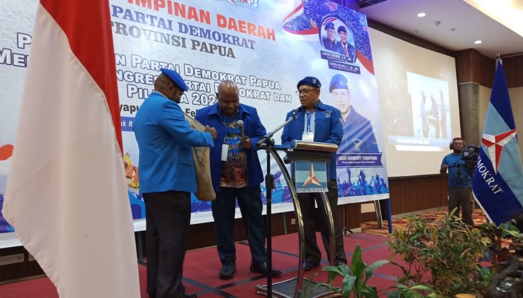 Pernyataan dukungan ini di lakukan dengan budaya khas Papua, dimana bendera dukungan di dalam noken oleh masing-masing pimpinan DPC Demokrat di 29 kabupaten kota se- Papua, saat acara pembukaan Rapat Pimpinan Daerah (Rapimda) Partai Demokrat Papua, Sabtu (8/02/20).